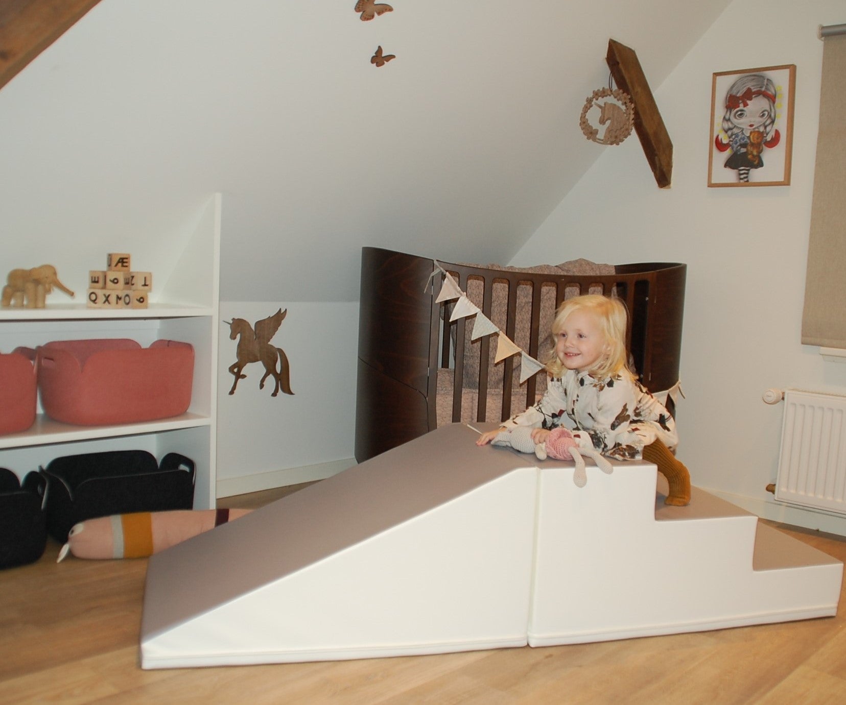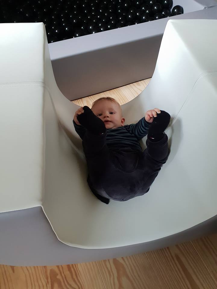 Mens vi er i kemo begynder det at gå den rigtig vej, og han begynder at kunne sidde selv – og venstre side begynder langsomt at fungere, men der er lang vej. Da vi stopper behandling kan han stadig kun humpe på måsen. Så her tænker vi han skal have noget som kan udfordre ham lidt på det motoriske, og derfor vælger vi skumlegesæt fra Legeskum, da det er dejlig blødt og noget lækkert materiel som er let holde. Filip kan nu kravle op og ned selv at trappen men også rutsjebane som han tager med hovedet først ned – på ryggen ja på alle tænkelige måder. Lige der ligner han en rigtig dreng og hans storebror og ham elsker den.